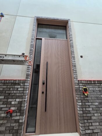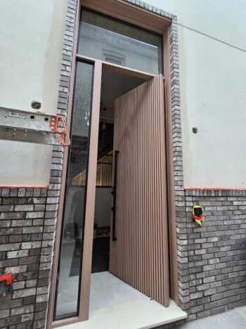 Porta pivotante em ACM Wood Castanha modelo ripado...