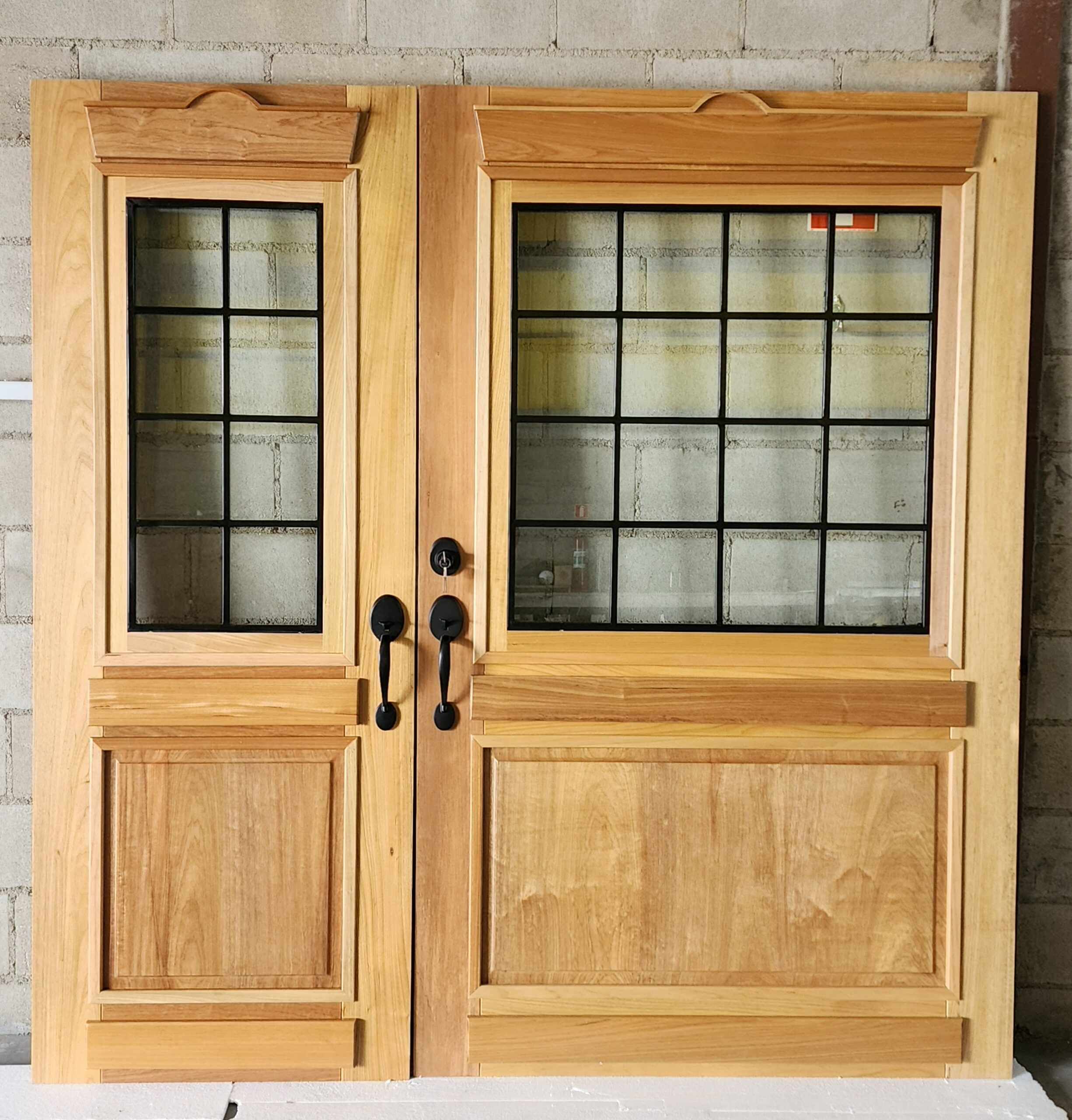 Porta com sistema de abertura dupla com grade de ferro quadriculado