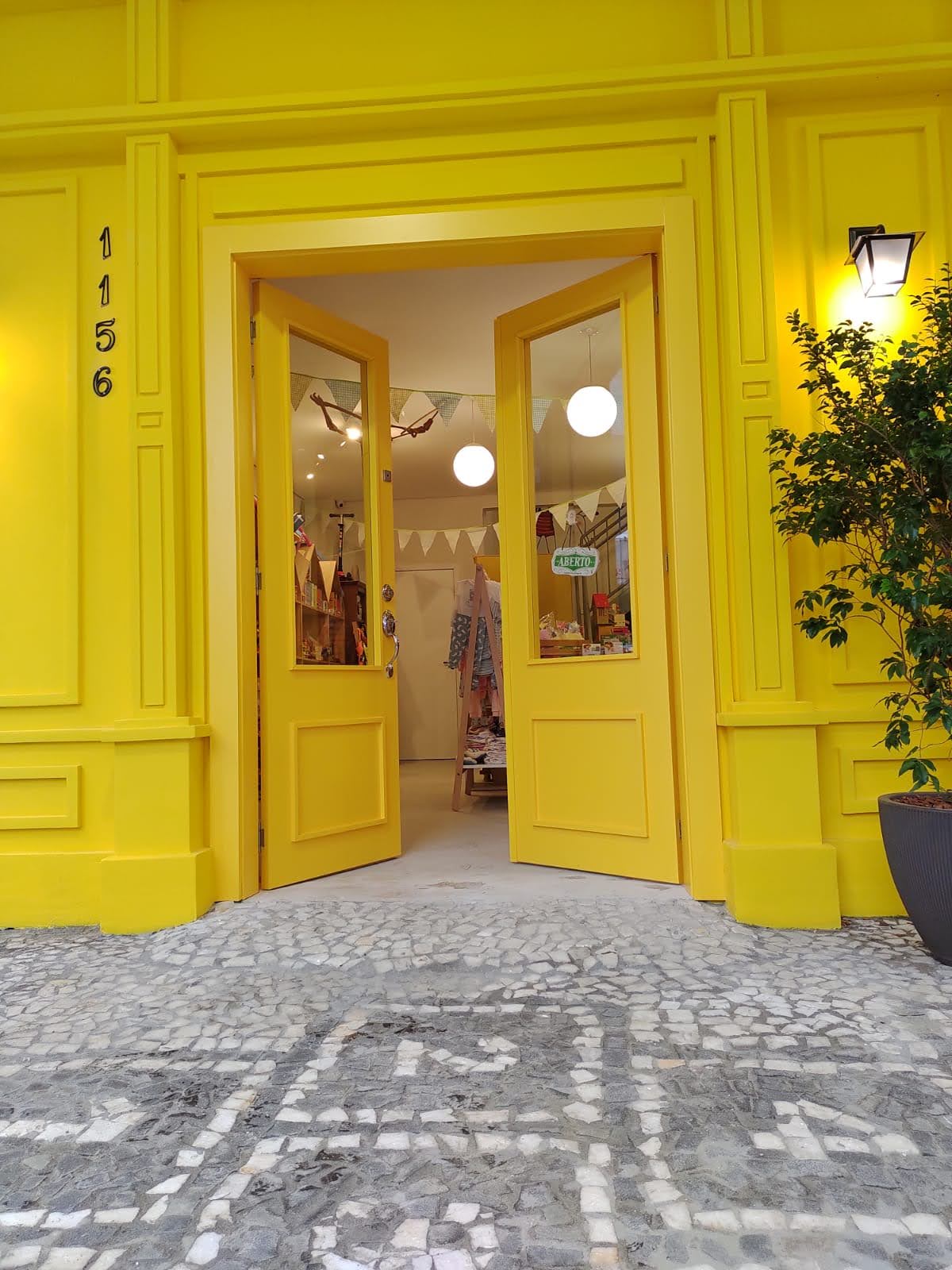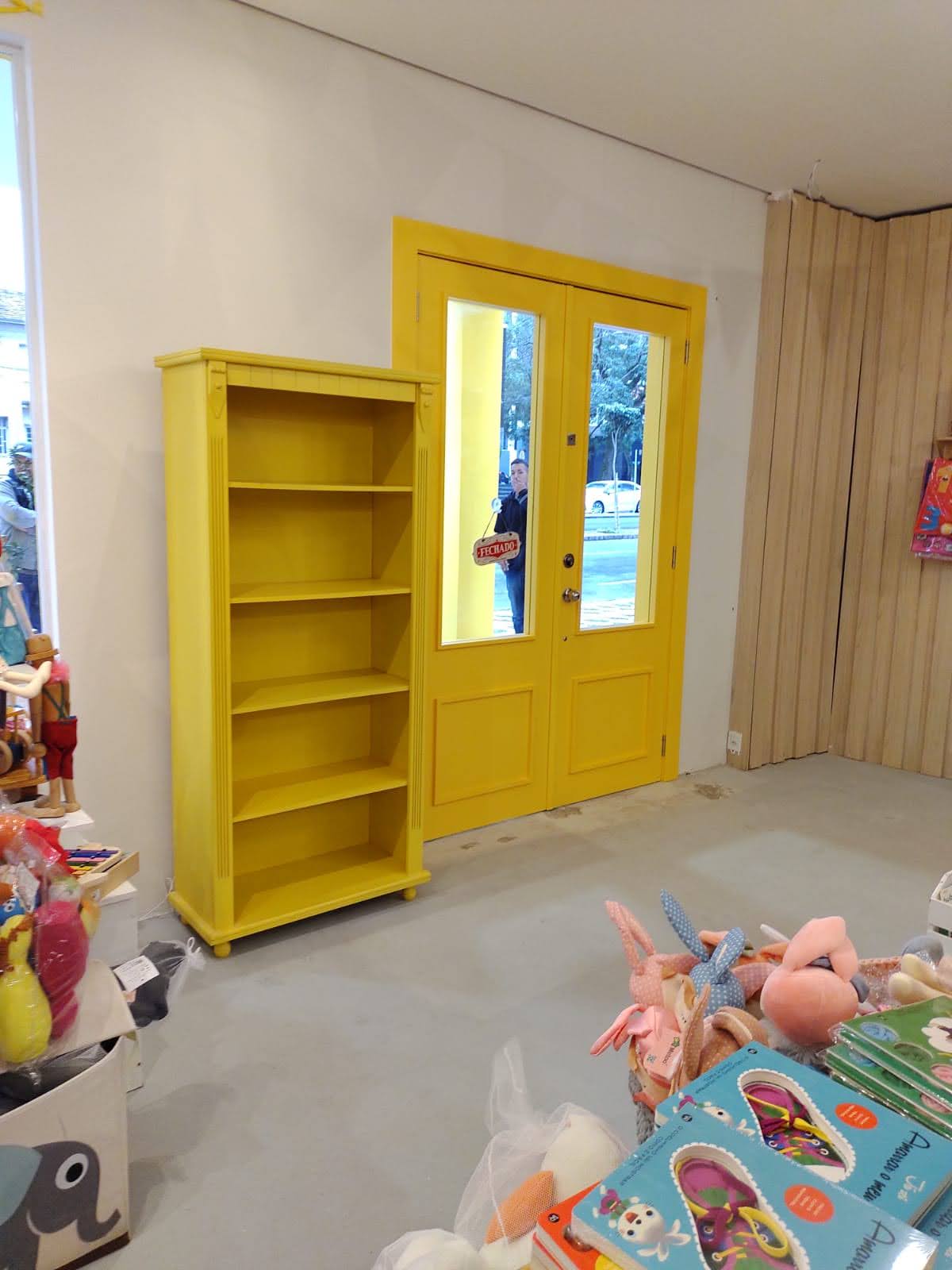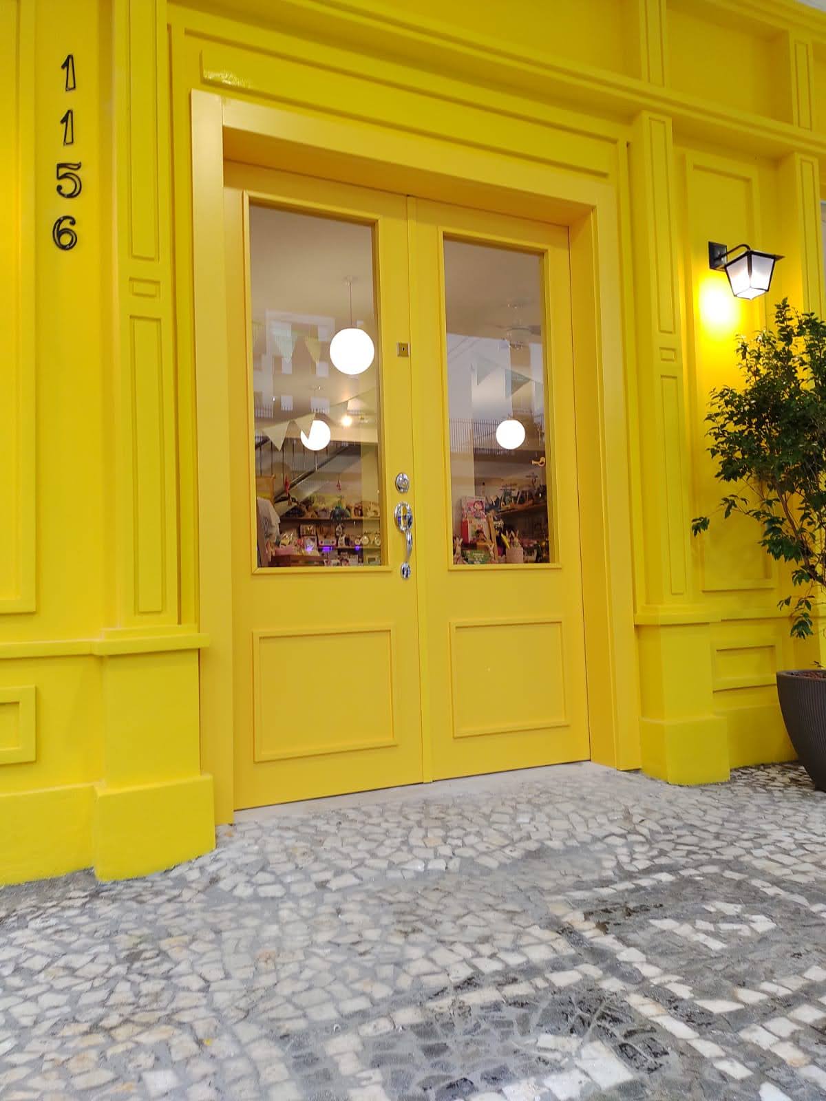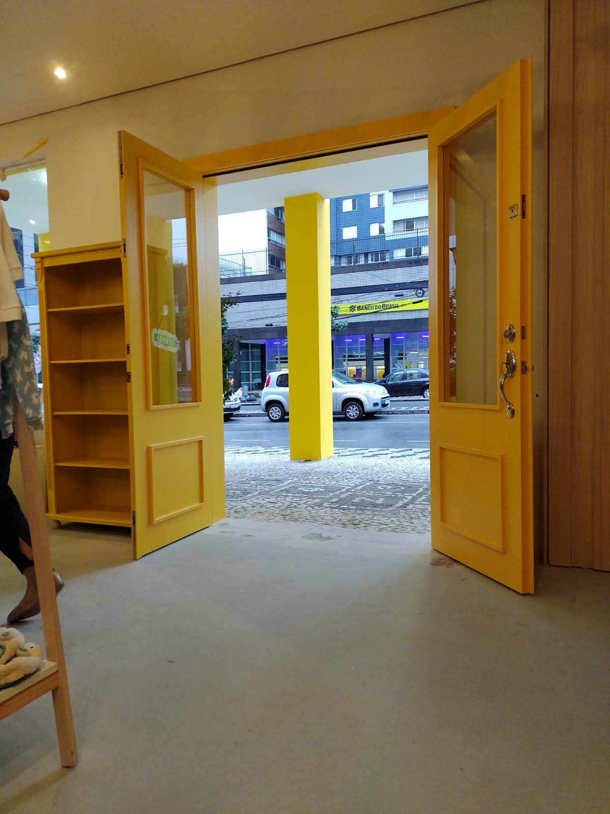 Porta com sistema de abertura dupla e acabamento em pintura laca amarela, destacando estilo e personalidade no ambiente