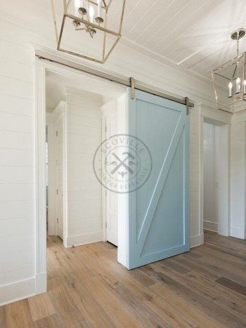 Porta de correr com trilho aparente, vidro panorâmico 10 mm