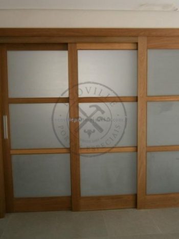 Porta de correr com trilho embutido e pintura de laca P.U amarelo acetinado (Sayerlack)