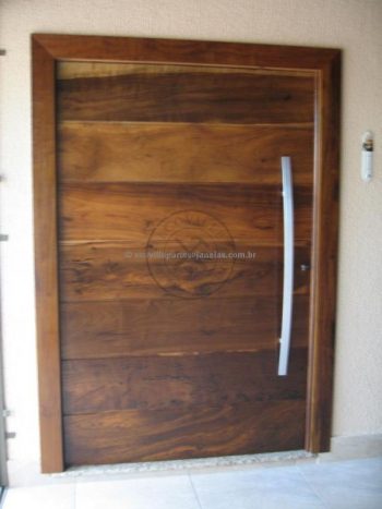 Entregamos a porta completa: porta, batente, guarnição, fechadura (a escolher), dobradiça pivotante, usinagens dos componentes e borracha de vedação.