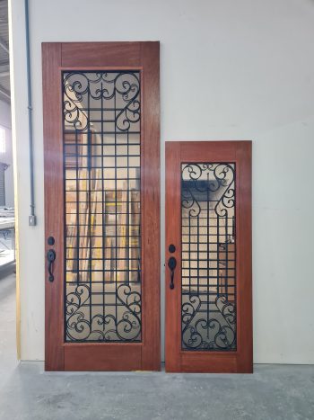 Entregamos a porta completa: porta, batente, guarnição, fechadura (a escolher), dobradiça pivotante, usinagens dos componentes e borracha de vedação.