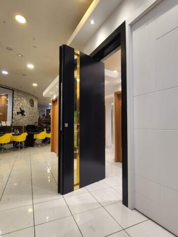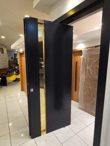 Porta pivotante em ACM preto fosco