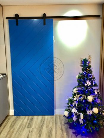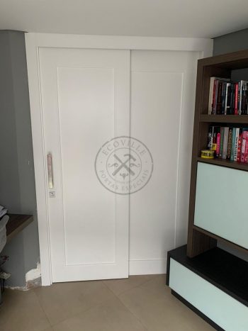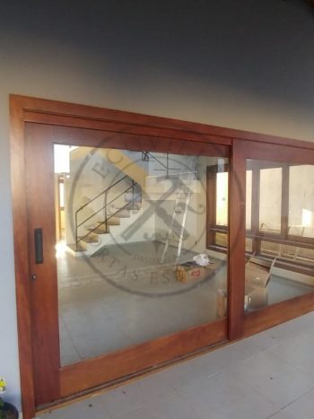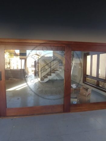 Porta pivotante lambril maciço Imbuia com painel lateral
