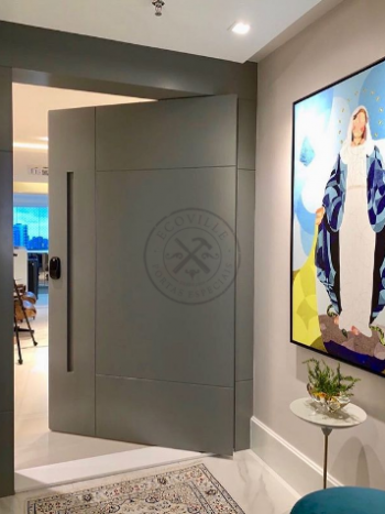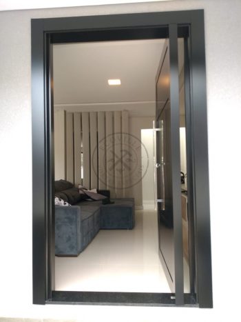 Porta pivotante em ACM amadeirado com vistas especiais...