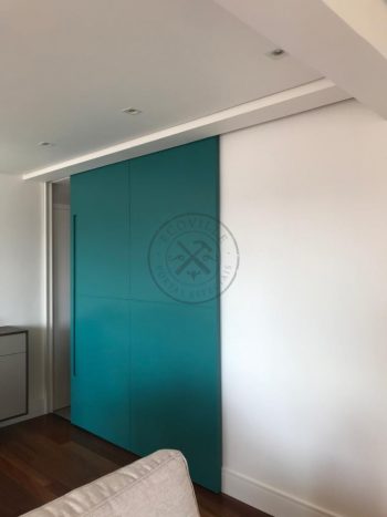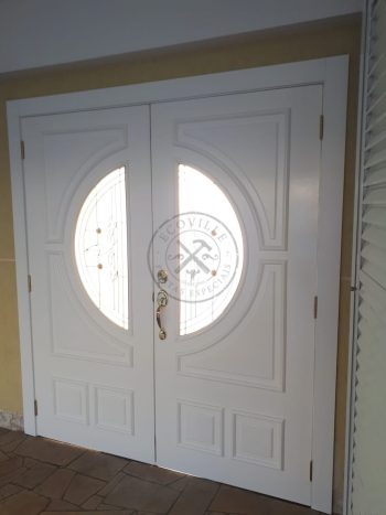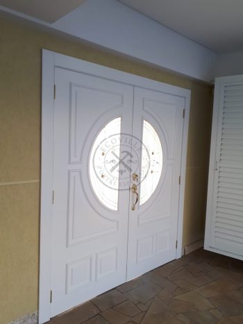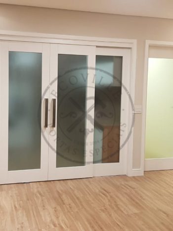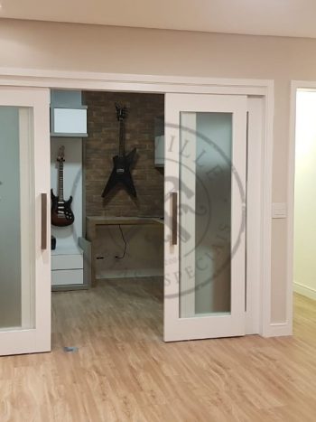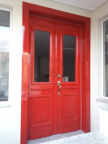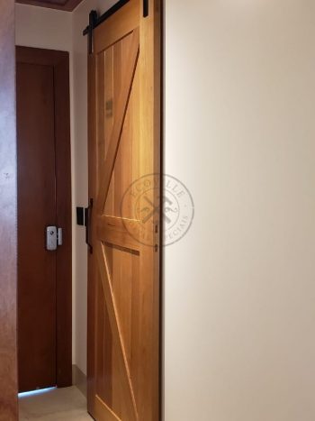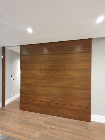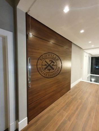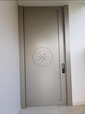Porta pivotante com revestimento em MDF, frisos horizontais...
